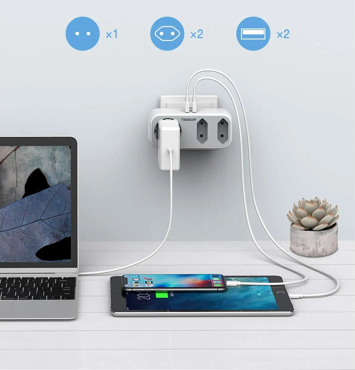 1️⃣ TESSAN 3-in-1 – 1 Prise + 2 USB (2.4A)