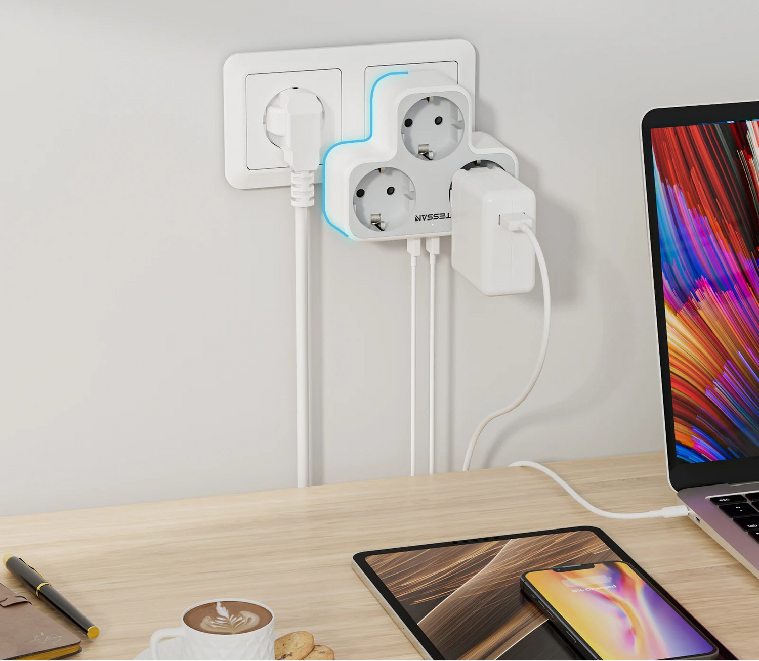 5️⃣ TESSAN Double Plug – 2 Prises + 4 USB (dont 1 USB-C)